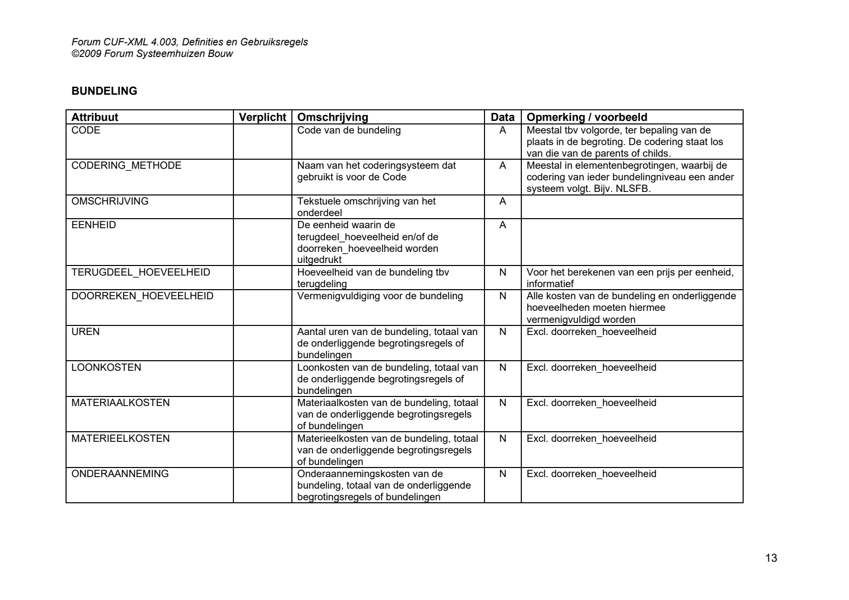 << Klik voor weergeven inhoudsopgave >> Navigatie: Werken met bestanden > Importeren en exporteren > In de module Calculeren > Exporteren > Exporteren CufXml-bestand > Beschrijving van het CufXml |