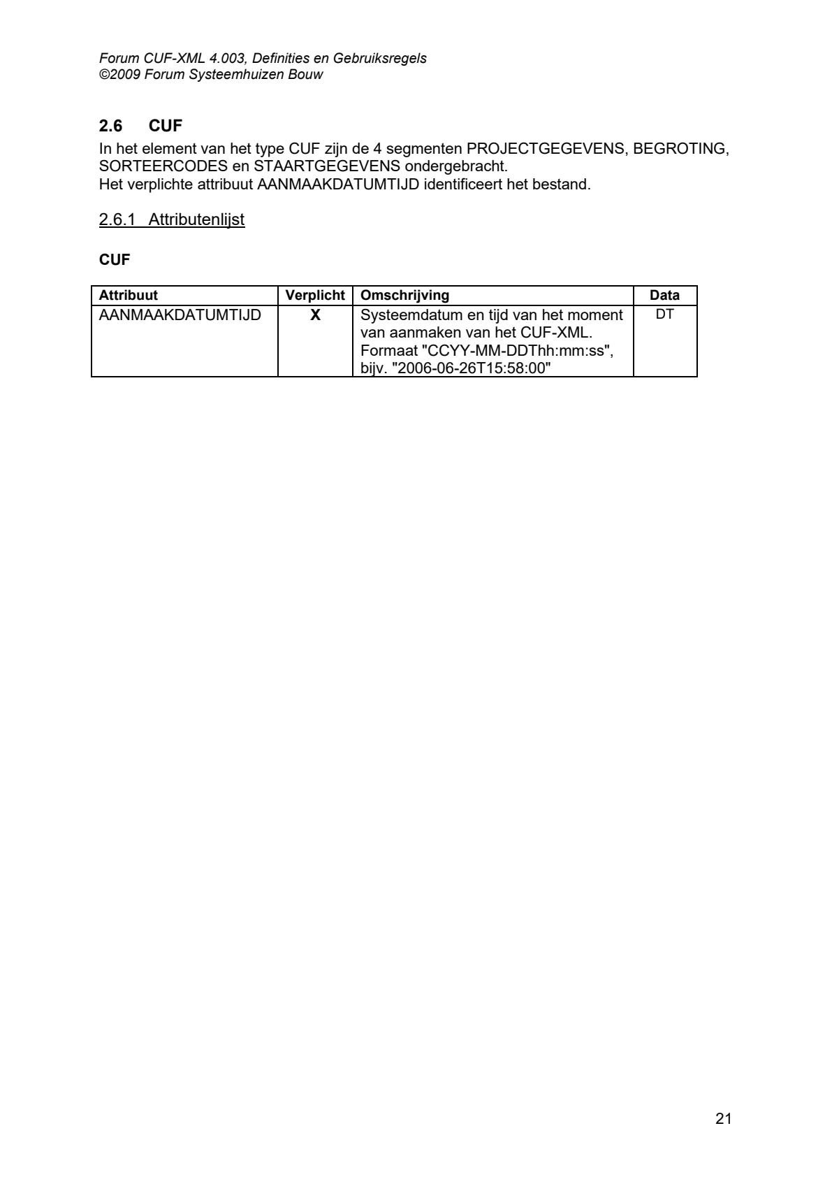 Hieronder treft u een document aan met daarin opgenomen de definities en gebruiksregels van het CufXml-bestand (Calculatie Uitwissel Formaat in XML) zoals opgesteld door Forum Systeemhuizen Bouw. Dit was een vereniging van software-leveranciers in de bouwnijverheid (B&U, Infra, Installatiebranche) met als belangrijkste doel de onderlinge contacten en samenwerking tussen de leden te bevorderen. Inmiddels is het beheer van het CufXml-formaat overgedragen aan de Ketenstandaard Bouw en Techniek.
